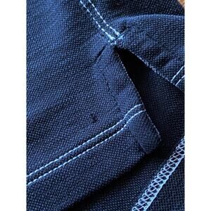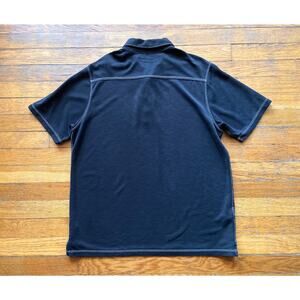 TOMMY BAHAMA Black Polo w/Contrast Stitch Trim size M. Featuring soft blended fabric with contrasting white stitch trim, contrasting placket & inner collar, embroidered logo on sleeve and vents for added style & comfort. *(Note: Very small hole by bottom left vent (as photo shows) but can easily be sewn up). Overall the polo is in great condition.