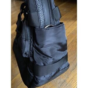 Looking for a stylish and spacious weekender bag for your next adventure? Look no further than this Tommy Bahama option. With a solid black design and multiple pockets, this unisex bag is perfect for any traveler. The pass-through strap and soft case make it easy to carry, while the 20" size provides ample space for all your essentials. Crafted from a soft nylon and faux leather material, this bag is sure to withstand the wear and tear of travel. *Note: Shoulder strap is not included but can be easily replaced.