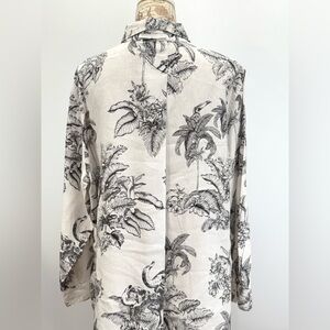 TOMMY BAHAMA Black and White Toile 100% Linen Button Down Shirt size XL