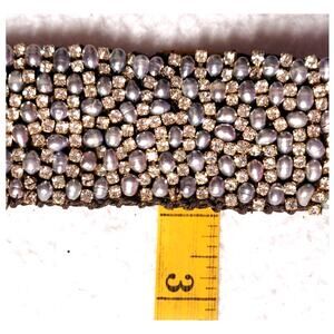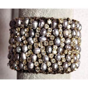 TOMMY BAHAMA Encrusted w Rhinestones Pearls Crochet Wide Statement Bracelet