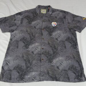 TOMMY BAHAMA FOOTBALL PITTSBURGH STEELERS SILK GRAY BUTTON UP MENS XXL SHIRT L21