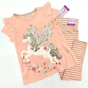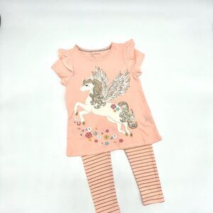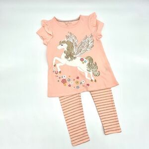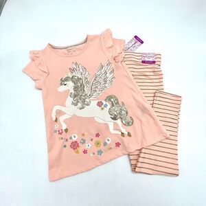 Adorable Tommy Bahama Kids leggings and ruffle sleeve top with a unicorn embellishment.