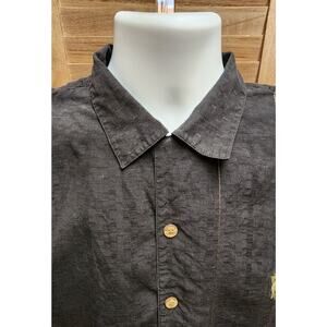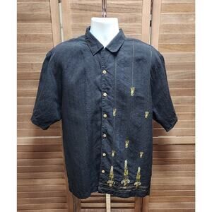 TOMMY BAHAMA Gold Pineapples Embroidered 100% Silk Hawaiian Medium M Shirt Black