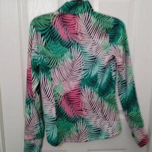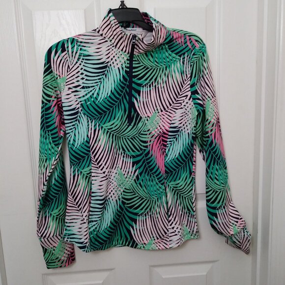 TOMMY BAHAMA Green Pink Tropical Long Sleeve Mock Golf Shirt S