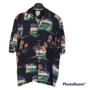 TOMMY BAHAMA Hawaiian Short Sleeve Aloha Palm Sailing Silk Camp Shirt Large