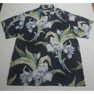 TOMMY BAHAMA Hibiscus 100% SILK Charcoal Blue Green Hawaiian CAMP Tropical NWOT