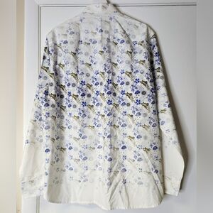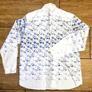TOMMY BAHAMA ISLAND MODERN FIT Cotton Silk Blue Green Leaves Shirt Size L
