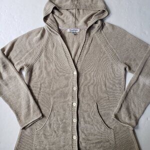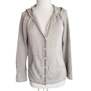 TOMMY BAHAMA Lea Hooded Linen V-Neck Knit Long Sleeve Beige Cardigan Size M.