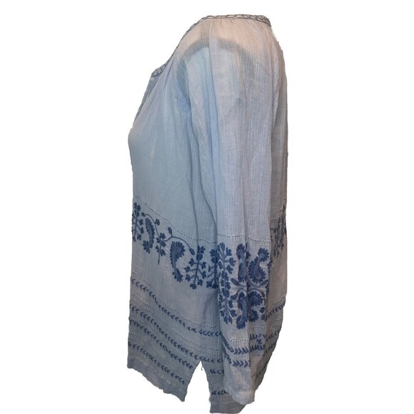 TOMMY BAHAMA Lightweight Cotton Embroidered Boho Tunic Top 3/4” Sleeves Sz S