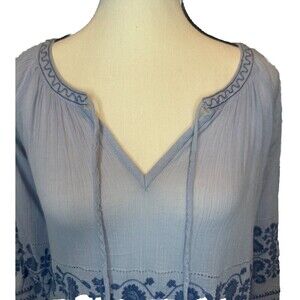 This Tommy Bahama tunic top is a must-have for any boho-chic wardrobe. The lightweight cotton material makes it perfect for any season, while the embroidered accents add a touch of elegance to the blue/lavendar color. The v-neckline and 3/4 sleeves make it a versatile piece that can be dressed up or down. The tunic style and size S make it a great addition to any wardrobe, and the brand's reputation for quality ensures that it will last for years to come.