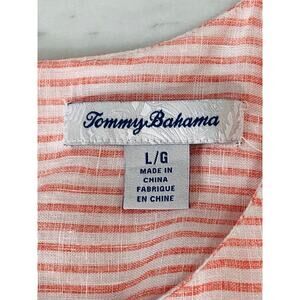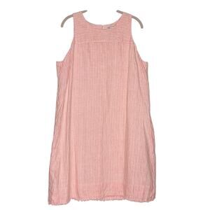 TOMMY BAHAMA Linen Shift Dress Large Peach Striped Sleeveless Fringe Pockets EUC