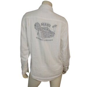 TOMMY BAHAMA Linen Shirt, M, White, Bleed-thru Back Print, Pocket, Long sleeve