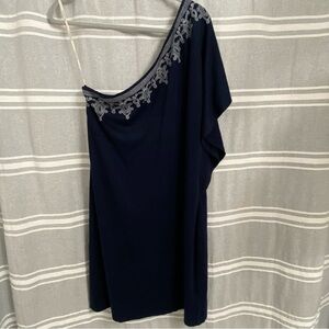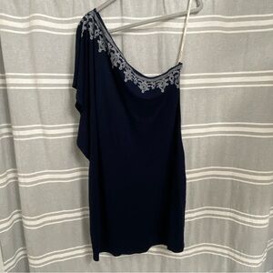 TOMMY BAHAMA / Lovelin One-Shoulder Linen Blend Dress Embroidery Detail Size L