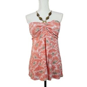 Keywords: Tommy Bahama, tube top, floral top, strapless top, womens top, casual top, summer top, sleeveless top, ruched top, floral print, womens fashion, medium top, orange top, white top