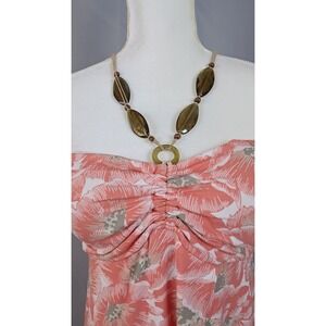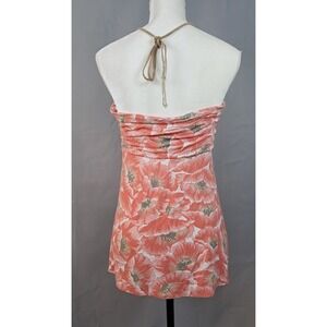 TOMMY BAHAMA M Floral Tube Top Halter Orange Slinky Liquid Knit Beach Resort