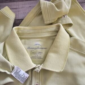 TOMMY BAHAMA Marlin 3 Button Polo Short Sleeve Shirt Embroidered Yellow Large
