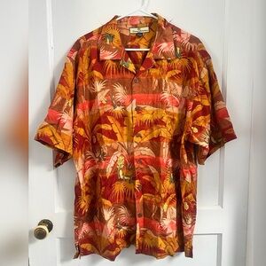TOMMY BAHAMA Men's 100% Silk Hawaiian Monkey Camp Shirt Size L LIKE NEW