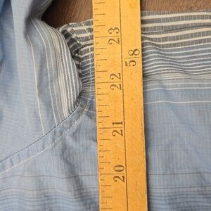 Experience the relaxed elegance of this Tommy Bahama shirt, featuring a light blue hue with subtle geometric stripes. Crafted from lightweight fabric, it's perfect for casual outings and warm weather comfort.