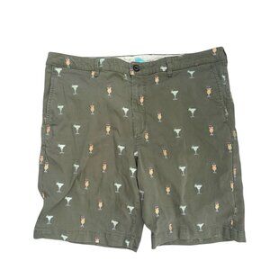 TOMMY BAHAMA Men's Olive Green Cocktail Print Embroidered Shorts Size 38