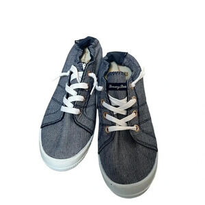Tommy Bahama Striped blue and white slip on no tie shoes.