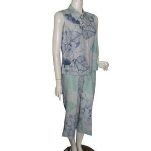 TOMMY BAHAMA Outfit/Set, 12/L, Silk/Linen, Sleeveless Top/Capri Pants, Blue, 2pc