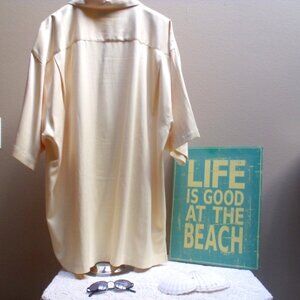 TOMMY BAHAMA Pale Yellow Silk Blend Aloha Hawaiian Short Sleeve Shirt Sz XL