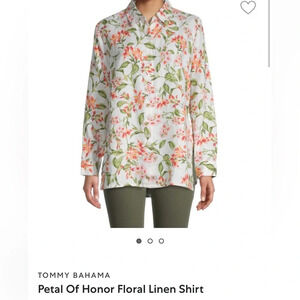 TOMMY BAHAMA Petal Of Honor Floral Linen Shirt SZ MED