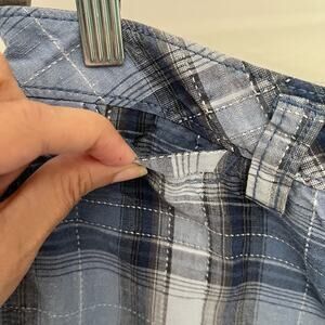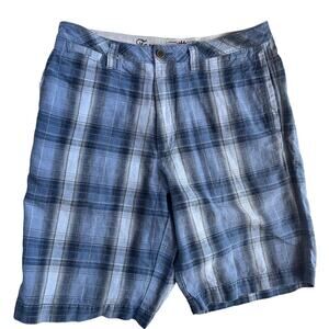 TOMMY BAHAMA Plaid Linen Silk Blend Mens Shorts Sz 33 Blue Paradise Nation 10"