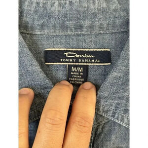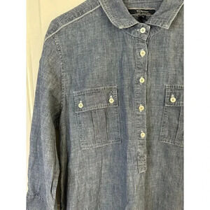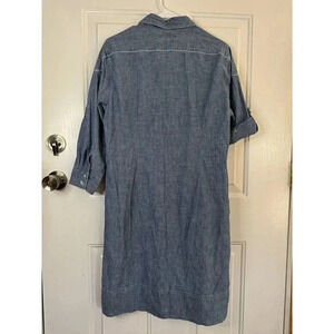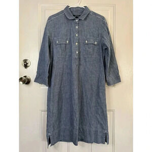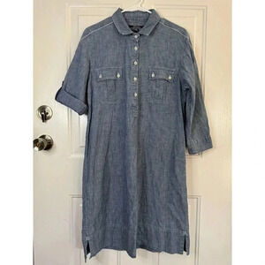 TOMMY BAHAMA Popover Shift Dress Cotton Chambray Blue Roll Tab Sleeve Medium