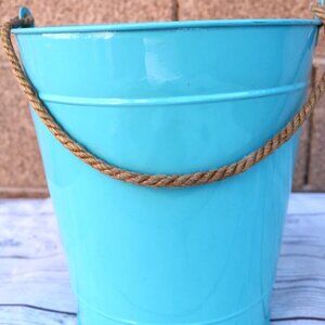This is a lovely Original Tommy Bahama Relax Aqua/ Light Blue Tin Metal Ice-bucket/ Wine Bucket/ Wine Chiller with Rope Handle Beach Nautical Barware. It is capacious enough to keep your favorite drinks chilled. Lightweight and easy to carry. Can be use for both Champagne and Wine, Bear or Ice.