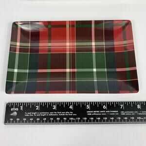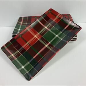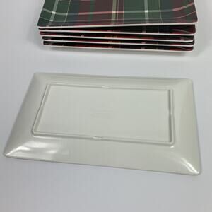 TOMMY BAHAMA Red Tartan Plaid Christmas Melamine Appetizer Snack Plate Set of 6