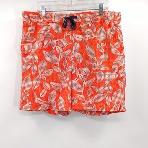 TOMMY BAHAMA Relax Swim Trunks Men's M Orange Gray Leaf Drawstring Waist Pockets