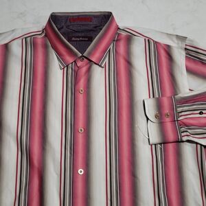 Elevate your wardrobe with this Tommy Bahama Sarasota Ombre Stripe dress Shirt. Perfect for any occasion, this classic button-front shirt features long sleeves, a collared neckline, and a button-down collar style. The multicolor WHITE PINK striped pattern is perfect for the summer, fall, or spring seasons and is made from a luxurious silk and cotton blend fabric that is easy to care for and lightweight.