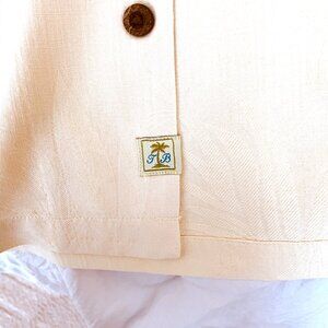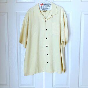 TOMMY BAHAMA Soft Yellow Background Yellow Embossed 100% Silk Camp Shirt XL