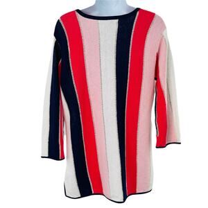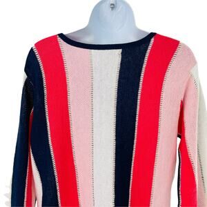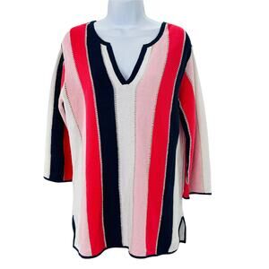 TOMMY BAHAMA Striped White Coral Pink Blue Lightweight Linen Pullover Sweater S