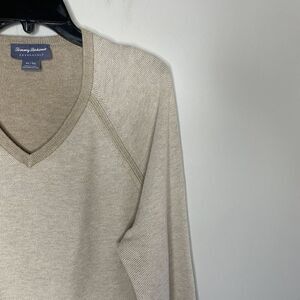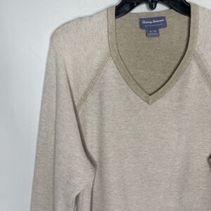 TOMMY BAHAMA Sweater Mens XL Beige Reversible V-Neck Pullover 100% Pima Cotton