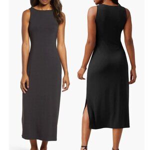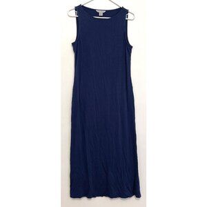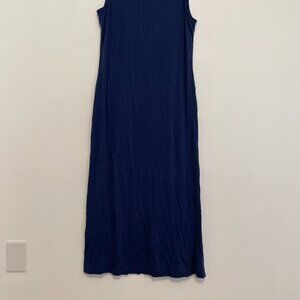 TOMMY BAHAMA Tambour Sleeveless Midi Dress Navy Blue Boat Neck Side Slit Fitted