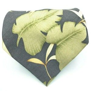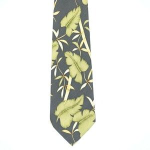 TOMMY BAHAMA Tie Gray Green Leaves Bamboo 100% Silk Hand Made Mens Necktie