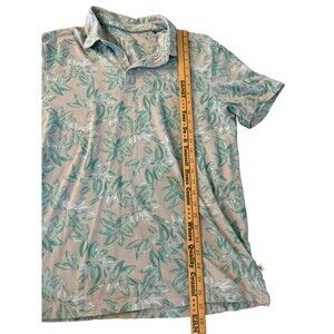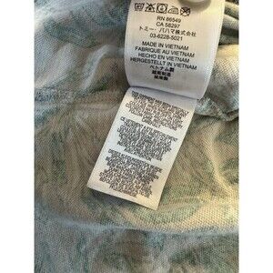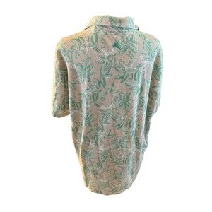 Get ready for a tropical getaway with this vintage Tommy Bahama button-up shirt. The relaxed fit and short sleeves make it the perfect choice for a casual day out in the sun. The floral pattern and collared neckline add a touch of sophistication, while the teal and tan color combination gives it a fun and vibrant feel.