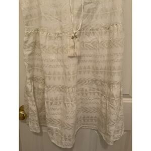 TOMMY BAHAMA WHITE W METALLIC THREADING SPLIT NECK DRESS WITH WHITE TASSLES SZ S