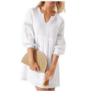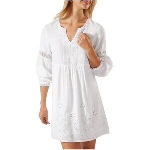 TOMMY BAHAMA White St. Lucia Linen Blend Split-Neck Mini Dress Sz M