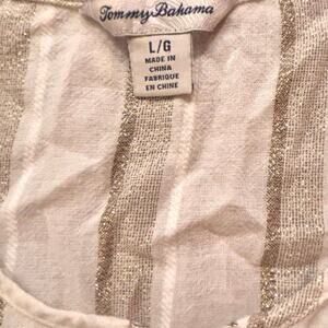 TOMMY BAHAMA Women's Striped White & Gold Metallic Threads Desert Light Peasant Tunic With Split Hem Sides