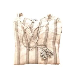 TOMMY BAHAMA Women's Striped Desert Light Peasant Tunic Tassels Metallic Large