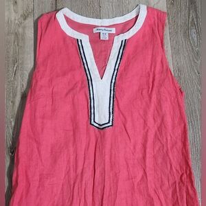 TOMMY BAHAMA SPLIT NECK PARADISE PINK LINEN SHIFT DRESS size M used