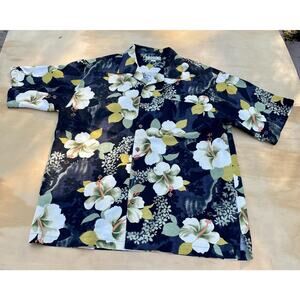 Tommy Bahama Blue Floral Button Front Polo Shirt Mens Size Large
