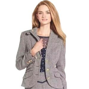 NWT Tommy Girl Tweed Herringbone Classic Blazer, Black/Gray
