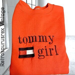 Tommy Girl Vintage 1990’s Embroidered Logo Label Red Crewneck Sweatshirt Medium
