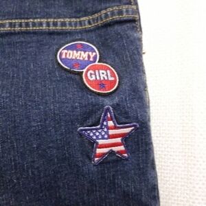 Tommy Hilfiger Tommy Girl Y2K size 13 stretch denim capris with Americana Patches.