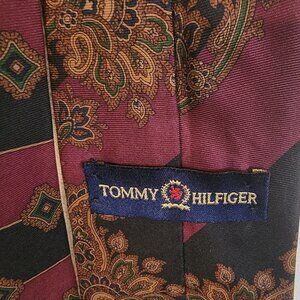 TOMMY HILFIGER SILK TIE/ BURGANDY GOLD AND BLACK