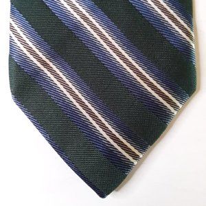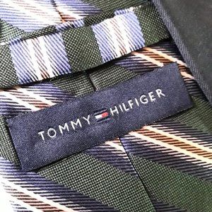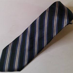 TOMMY HILFIGER - 100% SILK NECKTIE - DARK GREEN WITH BLUE & WHITE ACCENTS
